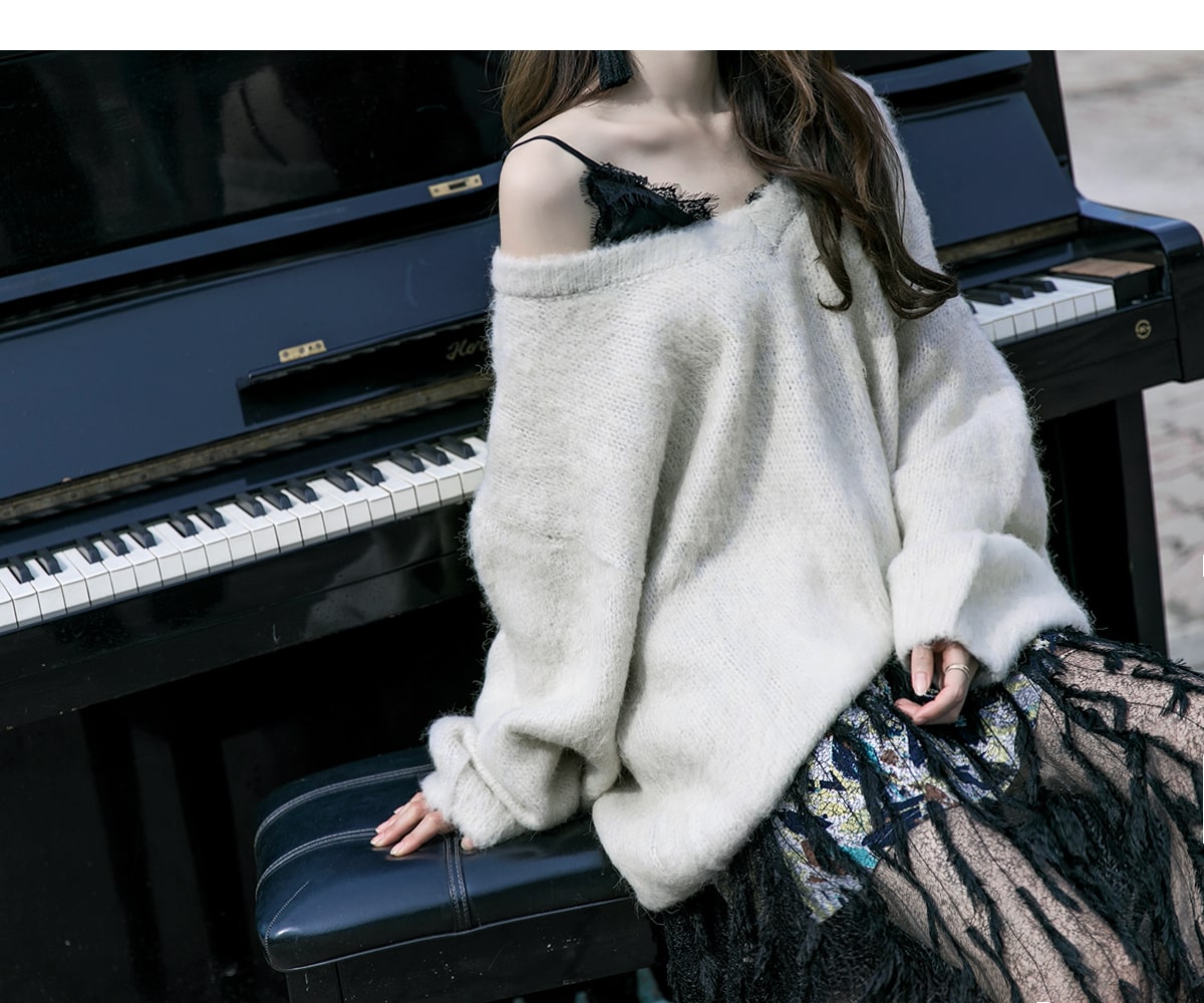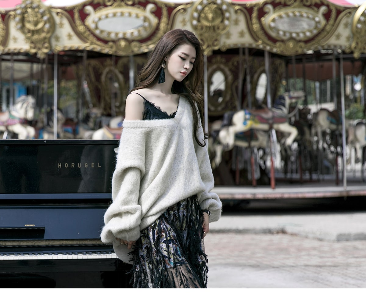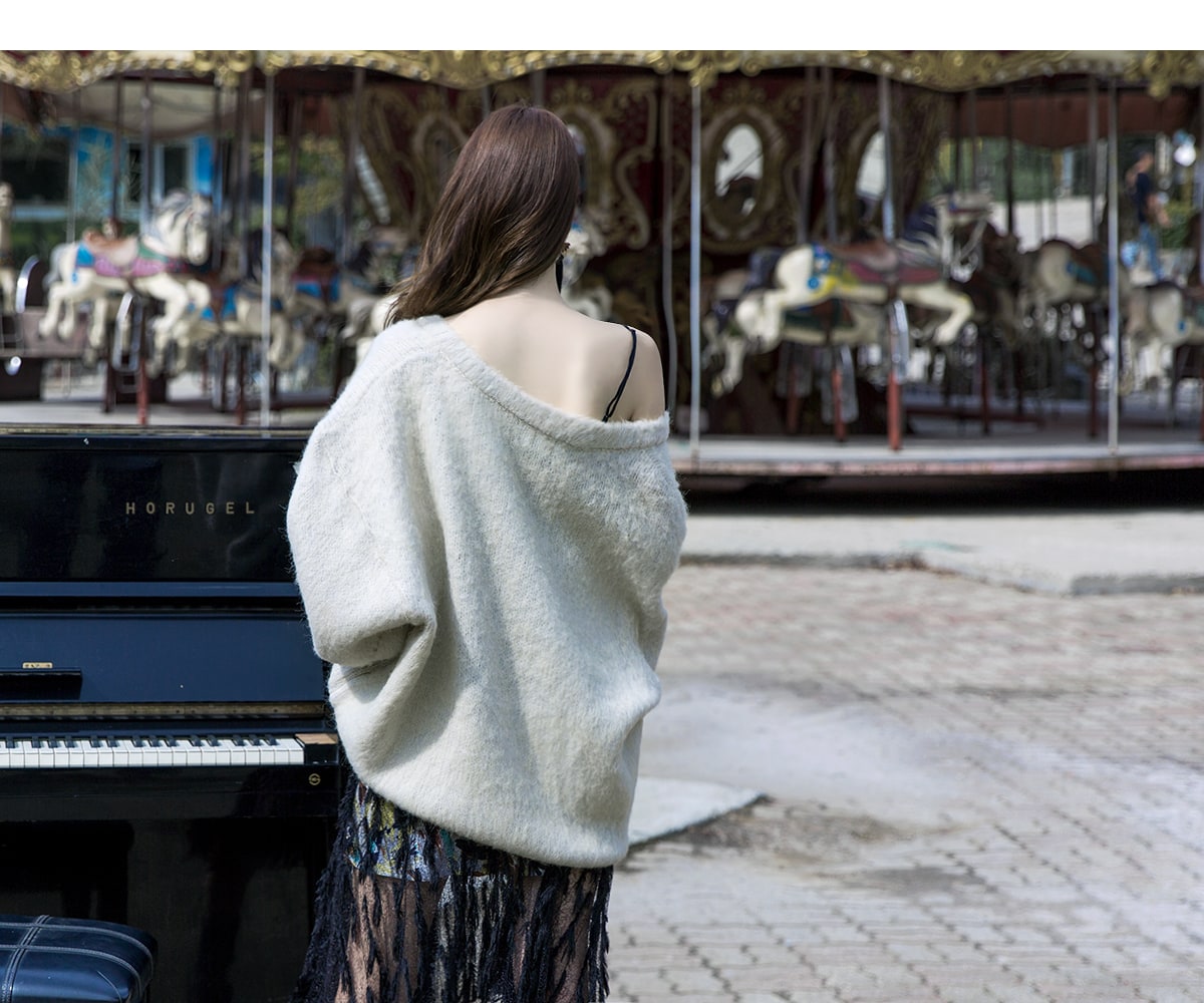 E-4403 소프트 박시 라인 니트 탑 Beige