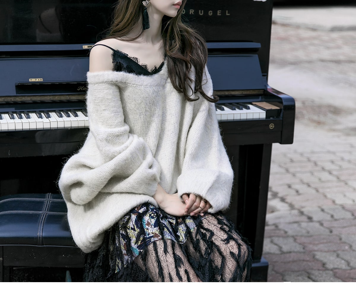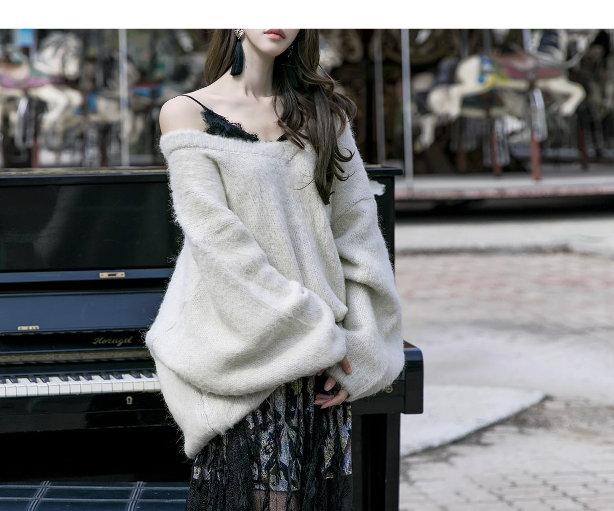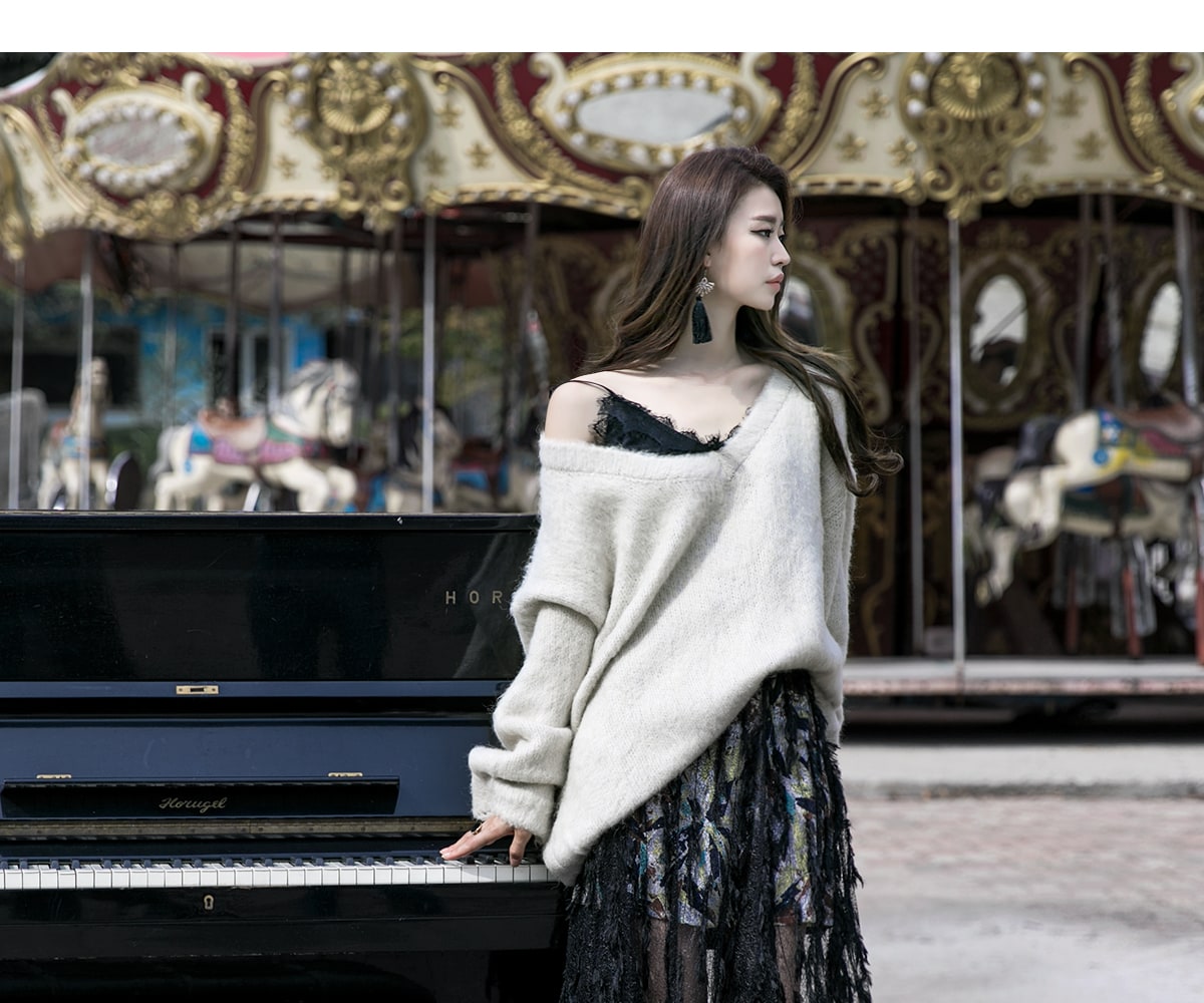 E-4403 소프트 박시 라인 니트 탑 Beige