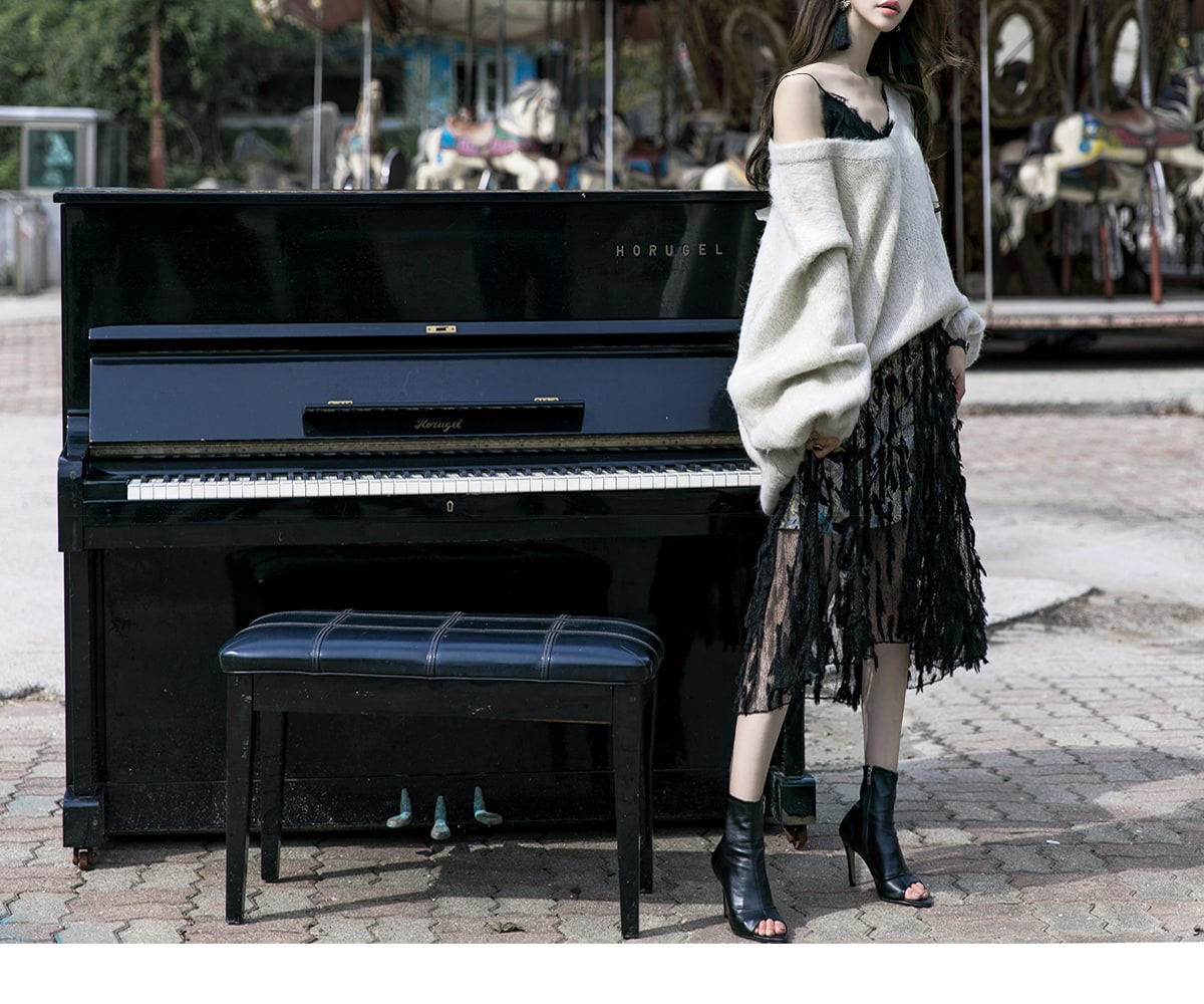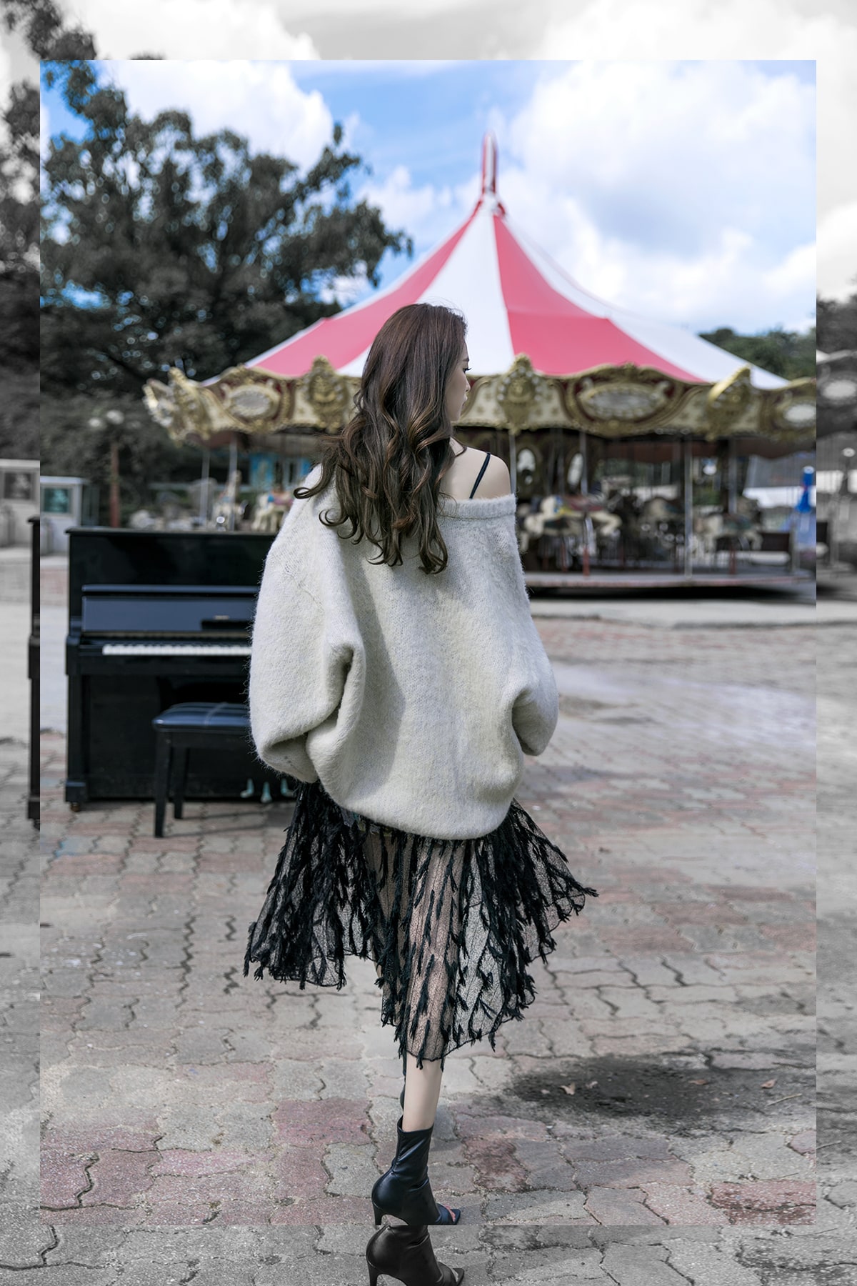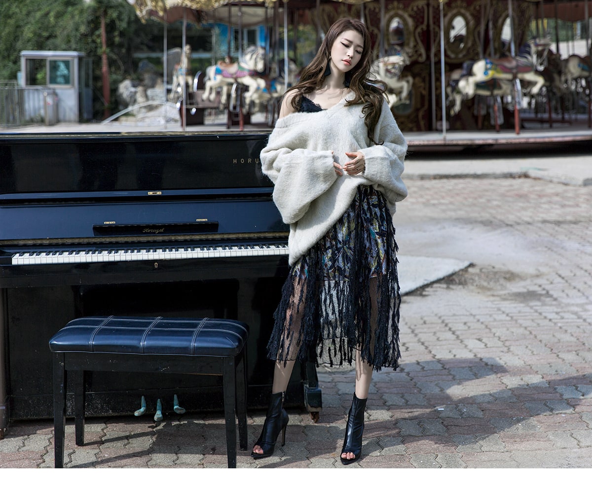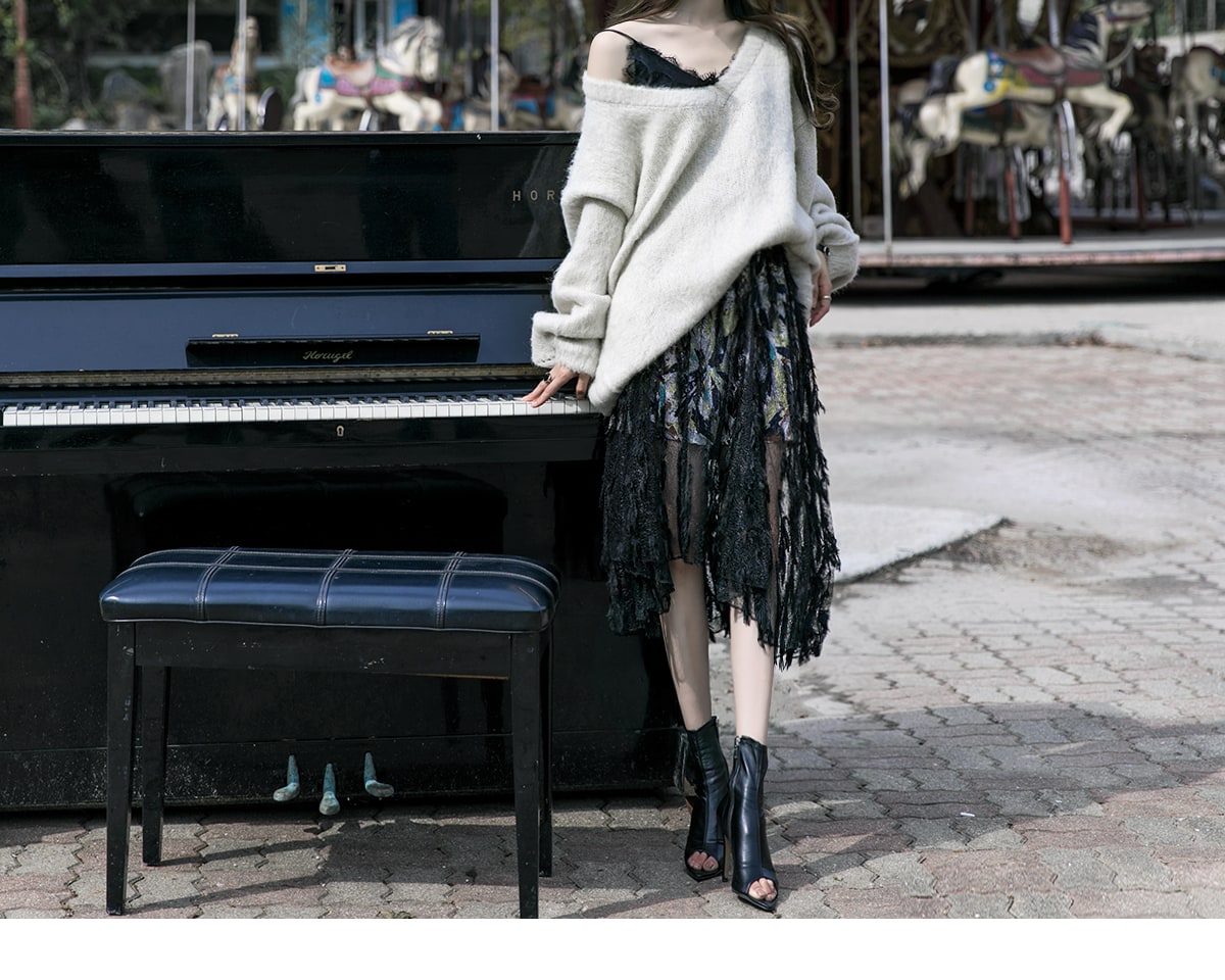 SK1680 히든 플라워 믹스 시스루 스커트 Black mix