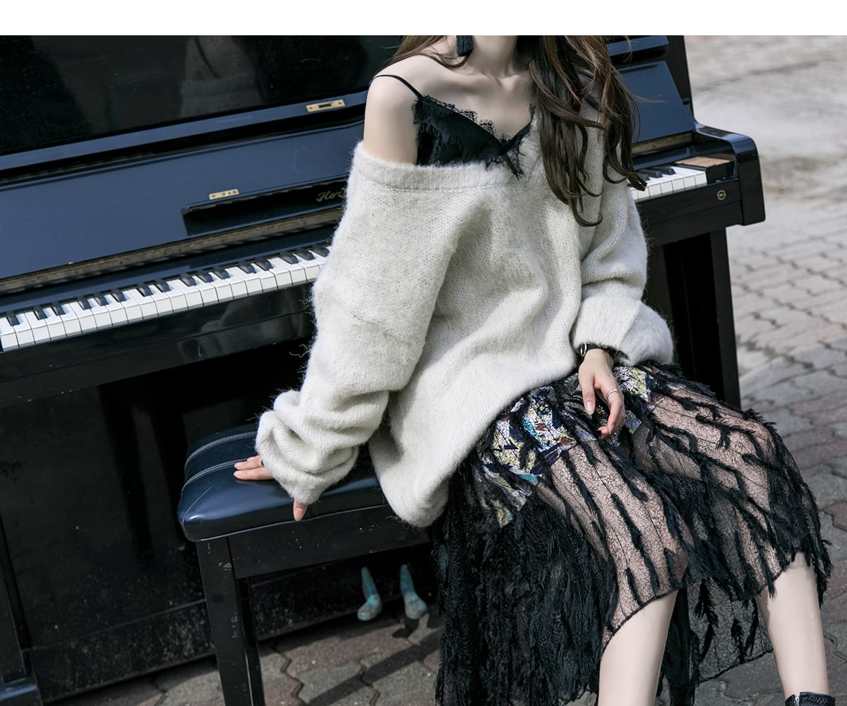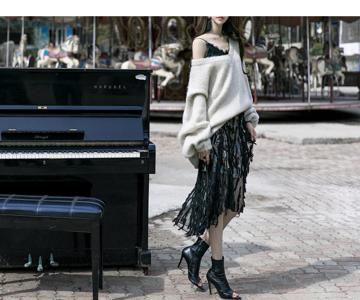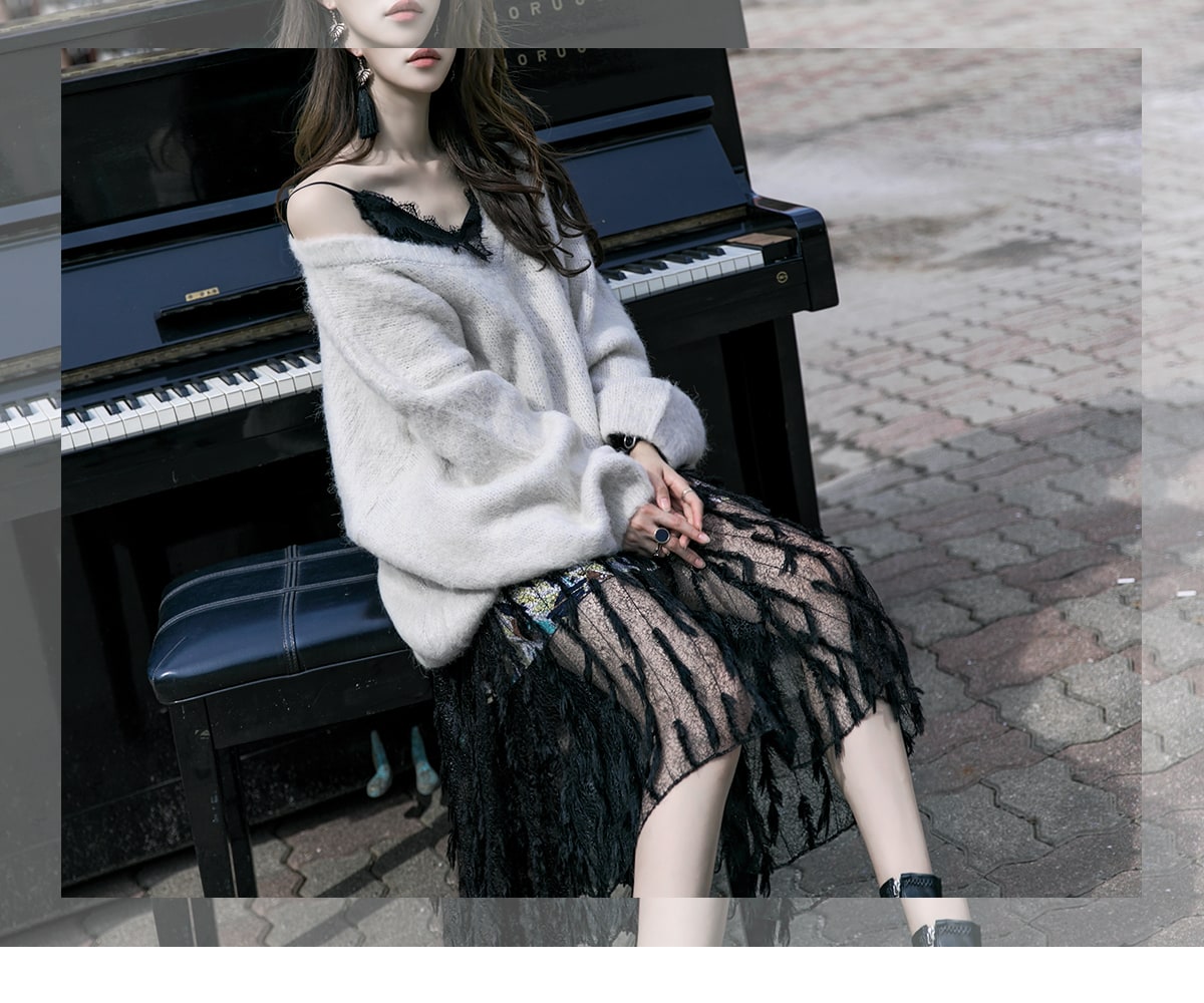 SK1680 히든 플라워 믹스 시스루 스커트 Black mix