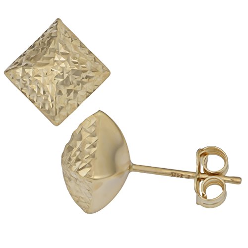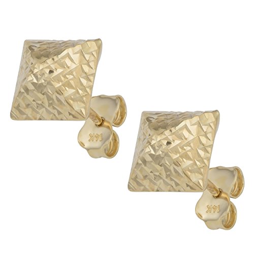 The radiant glow of diamond-cut finished 14k yellow gold is flawlessly echoed in this stunning pair of gold puffed square stud earrings. Simple and elegant, these 14k gold earrings will be an excellent everyday accessory as it will complement your casual or formal attire.