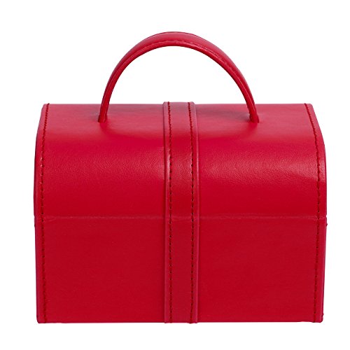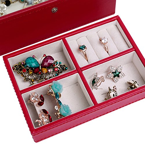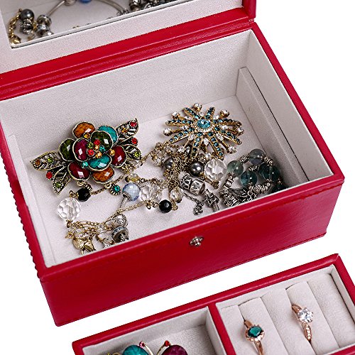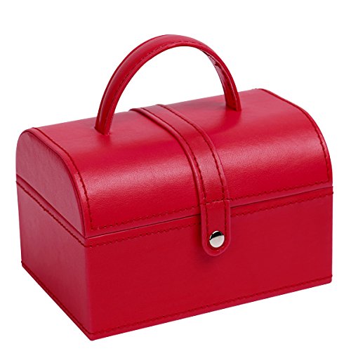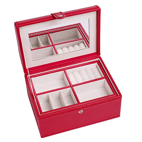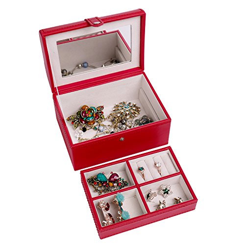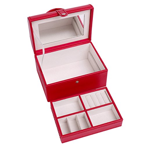 4Queens Girls travle Jewelry Box Red Pu Leather with Makeup Mirror Watch Display Organizer Storage Case