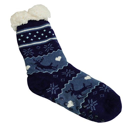 -. Feature : Fleece Lined Slipper Socks - Womens festive reindeer thermal slipper socks with super cozy fleece lining, keep your feet and toes toasty warm all day. The fluffy fleece lining adds extra warmth and brings your feet nothing but comfort and warmth. Soft, cozy and warm, reindeer socks keep your feet warmer than those heavy socks. Your feet will thank you for protection from the cold. / Non Skid Slippers - These thick winter fleece socks have silicone rubber grips on the soles of socks to prevent you slipping and falling on smooth floors, such as hardwood and tie floors. Perfect for wearing indoor, keep your feet toasty warm and comfortable with our womens warm socks. A must have item for the cold season. / Great Gift Idea - Multiple colors and reindeer patterns with cute fluffy cuff, super chic and fun! These fuzzy socks are awesome gifts that you can choose for your friends or families in their birthdays or in daily life. Also, these winter socks are the most perfect Christmas gift that you can find! / Free Size - Double Layer Thick Soft Warm Fuzzy Home Cozy Socks, one size fits most womens (US Shoe Size 5 - 10). Durable stretch provides ideal fit, so you do not have to worry about the size. Super soft feel for maximum comfort. These cute Christmas socks keep your feet warm and no pain day and night. You will absolutely love these cute home winter sock slippers. / 100% Satisfaction Guaranteed - 30 days free exchange and returns. Please contact us first if there is any question. We will do our best to meet your request and solve your problem quickly and efficiently!