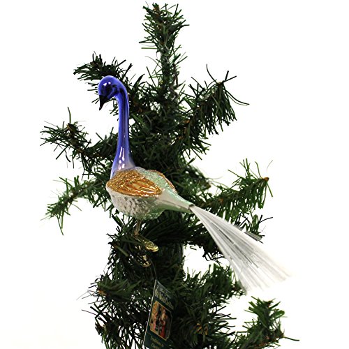 Old World Christmas WINTER WONDERLAND PEACOCK Glass Bird Clip On 18124 Gold