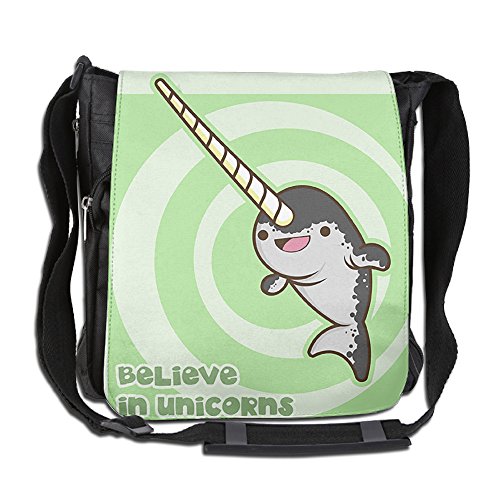 | Believe In Narwhals Men Wowen Outdoor Messenger Bag School Bag Crossbody Shoulder Bag-Black |