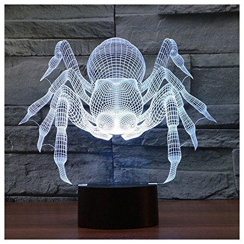 Studio : TOOGOO(R) Publisher : TOOGOO(R) Product Description * TOOGOO is a registered trademark. ONLY Authorized seller of TOOGOO can sell under TOOGOO listings.Our products will enhance your experience to unparalleled inspiration. TOOGOO(R) 3D Illusion Lamp Night Light Spider 7 Changing Colors Touch USB Table Gift Toys Decorations Material: Acrylic and ABS black COLOR Coming with USB power adapter, you can connecting it to your home power socket or computer USB port. Energy saving: Power spend: 0.012kw.h/24 hours; LED life span: 10000hours It can be put in bedroom, child room, living room, bar, shop, cafe, restaurant etc as decorative light. Package Details: 1 X lamp 1 X USB Cable 1 X English Manual Note: Light shooting and different displays may cause the color of the item in the picture a little different from the real thing. The measurement allowed error is /- 1-3cm. 0