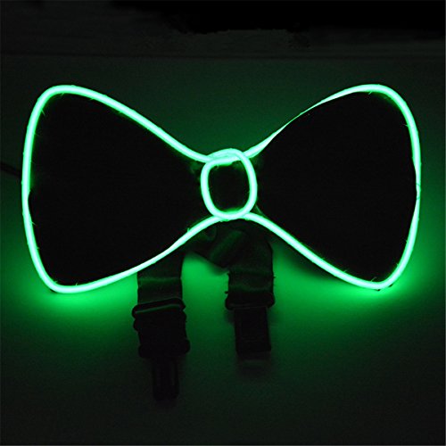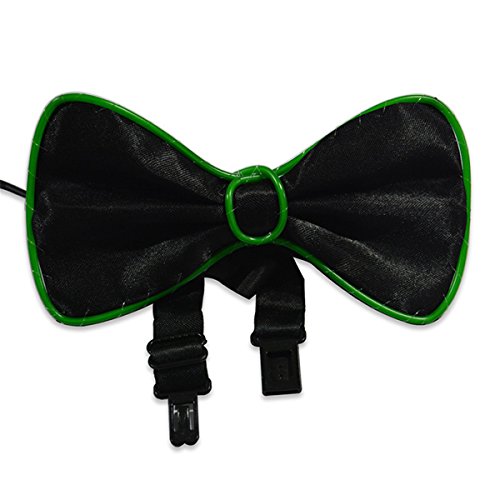 Stylish LED El Wire Light Up Bow Tie Perfect for Music Festival Rave Party Fashion Limited Collection (Green)