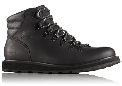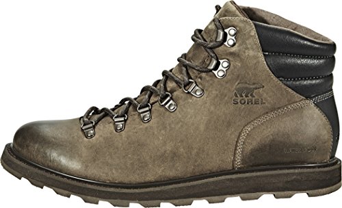 Product DescriptionWaterproof Sorel hiking boots with smooth leather uppers and quilted cuffs. Contrast laces over the padded tongue. Welted to a rubber lug sole.0