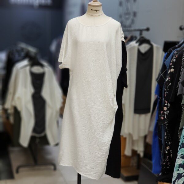 멋스러운 오버핏의 여름소재원피스~옆선배색이 세련미를 더해주며 휴가철 리조트룩으로도 추천합니다.가슴단면 70cm총장 107cm