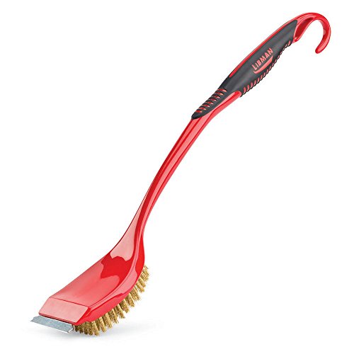 Libman Commercial 528 Long Handle Grill Brush with Scraper, Brass Fibers, 18" total length, Red and Black (Pack of 6)