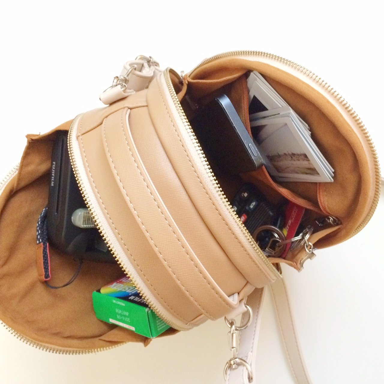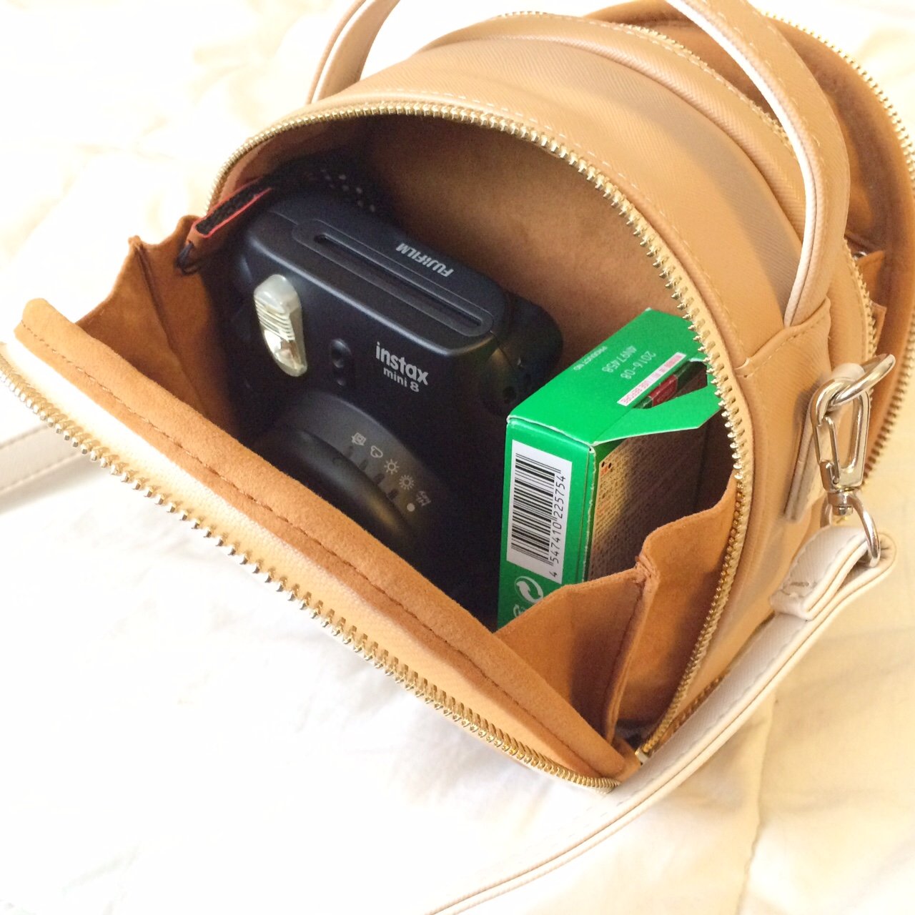 It is an ultra large capacity instant camera bag, it can be put together on both sides of the bag together with the camera body and other things, since there are pockets on both sides with a chuck.