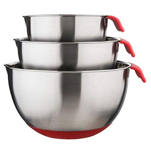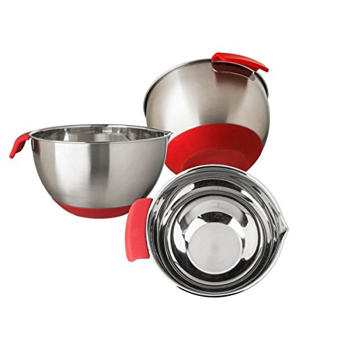 Pearington 3 Piece Mixing Bowl with Nonslip Bottom and Handle, Red