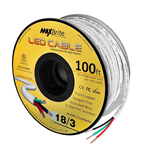 18AWG Low Voltage LED Cable 3 Conductor Jacketed In-Wall Speaker Wire UL/cUL Class 2 (100 ft reel)
