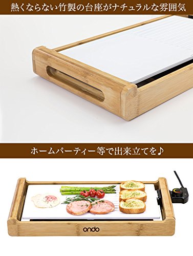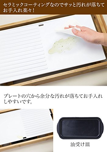 홈 파티 등으로 식탁에 두어 갓 나온 상태를 먹을 수 있습니다.유불요에서도 짧은 시간에 균일하게 구이 올릴 수 있고, 뜨겁게 되지 않는 죽소재의 받침대에 안심하고 운반하고 있습니다.플레이트의 구멍에서 여분인 기름이 빠짐,하(아래)의 받침접시(인수에 캐치 하므로 헬씨.세라믹 코팅 (이므로)그래서 갑자기 얼룩이 떨어져 손질 악?.■크기:본체/폭52.5×(길이)깊이28.4×높이6.8,코드 길이/약200cm■플레이트크기:횡39×종23×높이4.2cm■중량:2.8kg■재질:받침대/대나무,플레이트/세라믹 코팅■원산국:Made in China■정격전압:AC100V■정격주파수:50/60Hz■정격소비전력:1200w■온도 퓨즈:133도