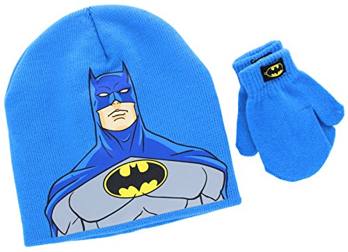 Product DescriptionKeep your little superhero toasty with this boy's Batman 2 piece set. This set includes a hat and a pair of gloves. Each item has a Batman symbol. Stretchy rib knit fabric fits most heads comfortably.0