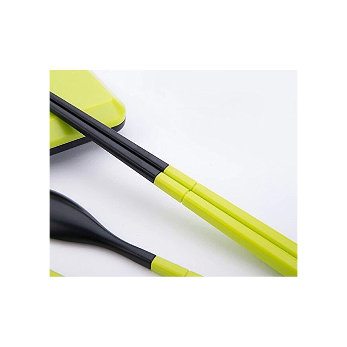 SODIAL(R) 아웃도어 여행 피크닉 포터블인 식기 환경에 상냥한 ABS식기 젓가락 스푼후 ―쿠의 수납 박스(녹색)