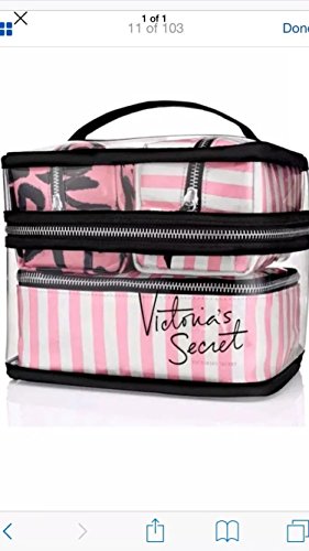 -. Feature : Victoria's Secret Train Case / Travel Case 4 piece Set. Four separate cosmetic bags with zip closures / Clear Bag: 8 1/4"L x 6 1/4"W x 6 3/4"H / Small VS Stripe Bag: 5 1/2"L x 3 3/4"W x 3 1/4"H / Small Signature Script Bag: 5 1/2"L x 3 3/4"W x 3 1/4"H / Medium VS Stripe Bag: 7 1/2"L x 5 3/4"W x 3"H