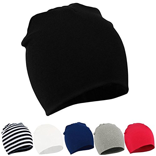 Zando Infant Toddler Baby Boy Girl Cotton Soft Cute Lovely Cool Kids Hat Beanies Caps for Autumn B 6 Pack Black Stripe White Navy Light Grey Red Large/1-4 Years