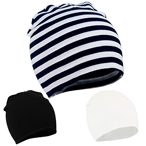 Zando Infant Toddler Baby Boy Girl Cotton Soft Cute Lovely Cool Kids Hat Beanies Caps for Autumn C 3 Pack Stripe Black White Large/1-4 Years