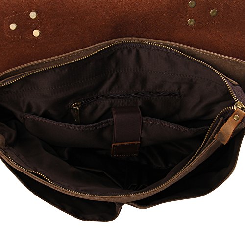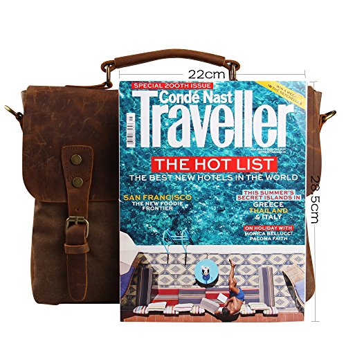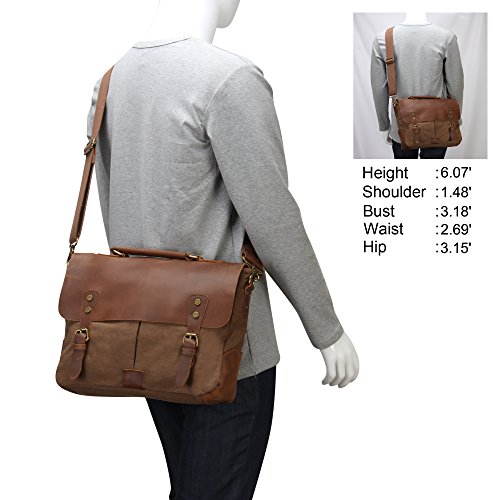 - Feature : Made of high density canvas and genuine leather / Retro style design, well sewn craftsmanship / Ample room for iPad, A4 size files and other necessities / Bronze-tone buckles detail, durable top handle and adjustable shoulder strap for easy carrying / Approx. Dimensions: 14.2''L x 3.9''W x 11.0''H