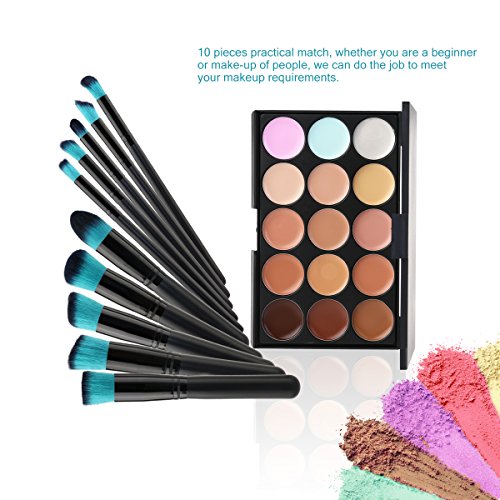 Tinksky 10 Makeup Brushes + 15 Colors Concealer Palette Highlighting Contour Face Cream Makeup Contouring Kit