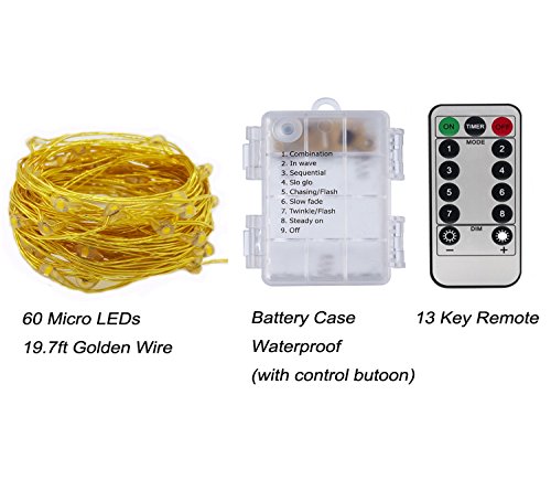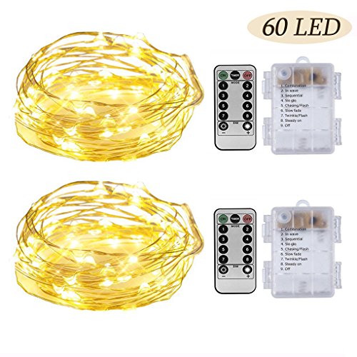 2 Set Twinkle Decor Lights 60 LED 19.8Ft Gold Wire 8 Modes String Lights with Remote,LRCXL Battery Operated Waterproof Fairy Lights for Halloween Party Christmas day Decor Party Lights(Warm White)