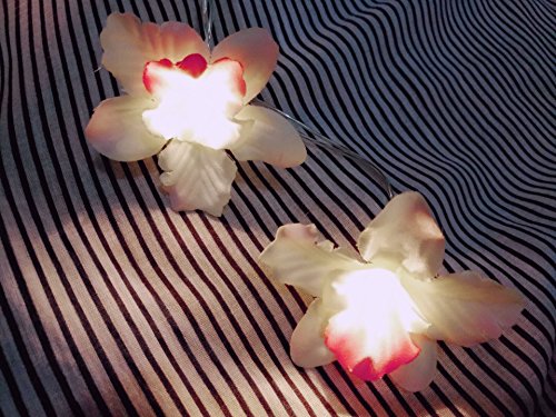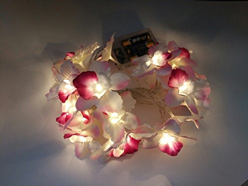 - This fabric orchid flower fairy light is total 3m/9.8ft long with 20 LED bulbs,clear cable and battery box.
