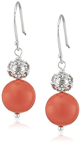 Sterling Silver Dyed Pink Shell and Fireball Drop Earrings