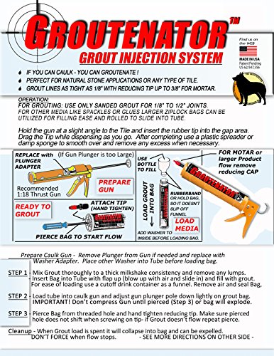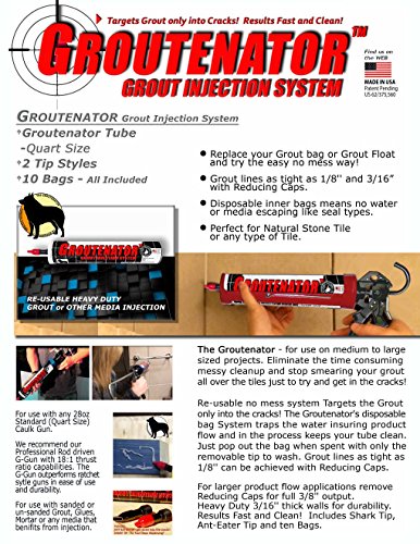 GROUTENATOR - Caulk Gun Injection System for Tile Grout, Mortar, Cement, Glues and more... Grout Bag and Float Replacement.
