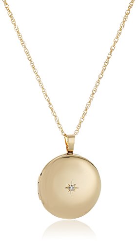 14k Gold-Filled Polished Round Pendant with Genuine Diamond Locket Necklace, 18"