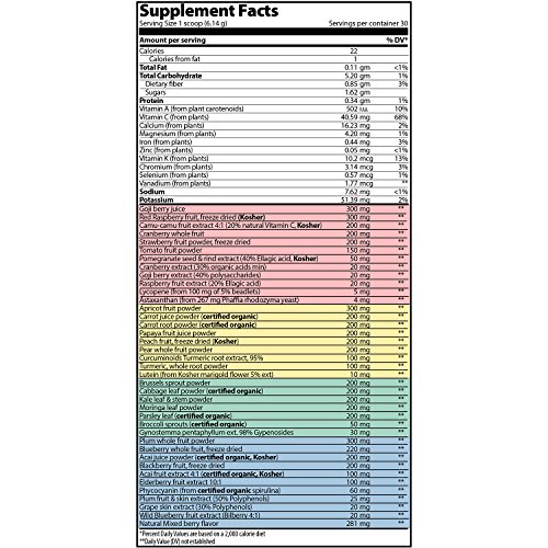 NO GRAY AREAS: We do not live in a monochromatic world, with nutritional supplementation, red drinks are not enough. Good health does not revolve solely around the strength of antioxidants in the diet. Soluble and insoluble fibers, indoles, sulforaphane, flavanols, flavonoids, and complex polysaccharides and carotenoids all play a part.