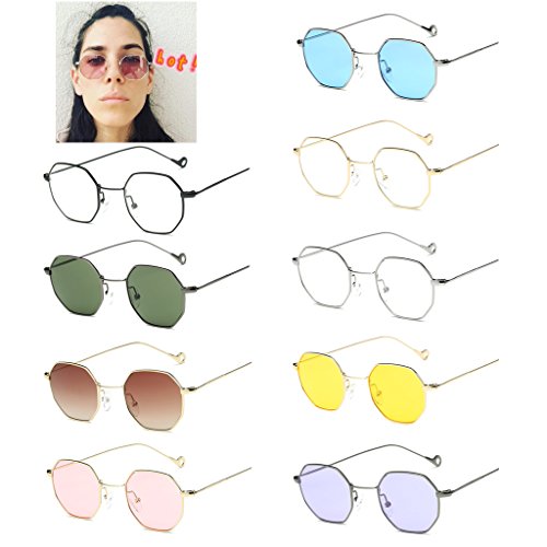 100% brand new and high quality Features: Fashion Retro Metal Frame Round Hexagon Sunglasses for men women Classic and innovative design concept, the integration of popular elements as a whole. Ergonomic design style nose pads, comfortable to wear. Make you more Charming in anywhere It is also a good festival gift for your friends,lovers... Specifications: Frame Material: Metal Lens Material: Resin Designed For: Men/Women Suitable places: Everyday casual. Suitable for face shape: Round face,Long face,Square face,Oval shape face. Size: (Approx) Total width: 13.1cm/5.16' Lens Width : 4.4cm/1.73' Frame height: 3.9cm/1.54' Bridge: 2.1cm/0.83' Leg length: 13.4cm/5.28' Colors for choose: GoldTea,GoldYellow,SilverBlue,GoldPink,BlackPurple,GrayGreen,Gold Flat Glasses,Silver Falt Glasses,Black Flat Glasses Quantity: 1 Pc 0