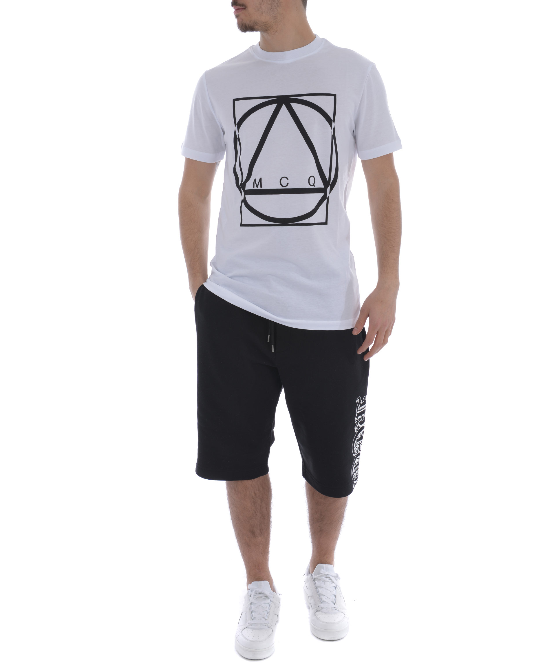 Logo Print T-Shirt from MCQ Alexander McQueen: White Logo Print T-Shirt with a large logo, a crew neck, short sleeve and straight hemline.