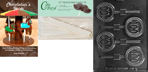 Cybrtrayd '100 Lolly' Letters and Numbers Chocolate Candy Mold with 50 4.5-Inch Lollipop Sticks and Chocolatier's Guide