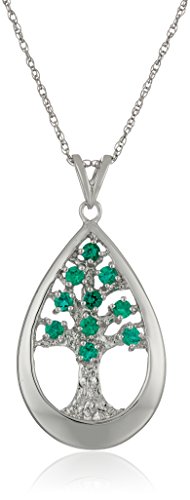 Sterling silver necklace featuring teardrop pendant with textured tree pave-set with round gemstones