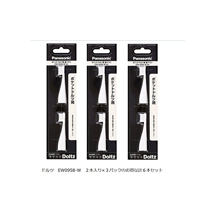 원본상품명: (お得 まとめ買い)2本入り×3パックセット(計6本)パナソニック 音波振動ハブラシ ポケットドルツ やわらかめタイプ 替ブラシ(1パック2本入) EW0958-W(ホワイト)