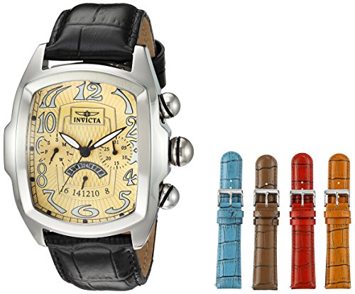 -. Title : Invicta Men's 'Lupah' Quartz Stainless Steel and Leather Casual Watch, Color:Black (Model: 23208)