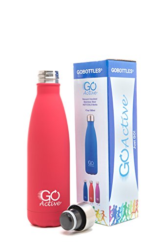 GO Active 16oz Travel Coffee Mug and Insulated Water Bottle. This All-In-One Stainless Steel Thermos has Swell Insulation perfect for Sports, Fitness, Camping, Traveling and Commuting (Red)