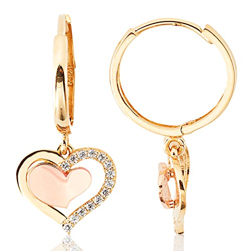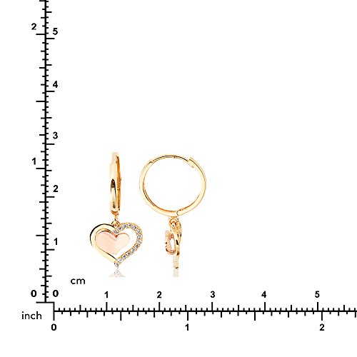-. Title : 14K Rose and Yellow Gold Heart Dangling Earrings With CZ for Women and Girls