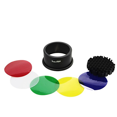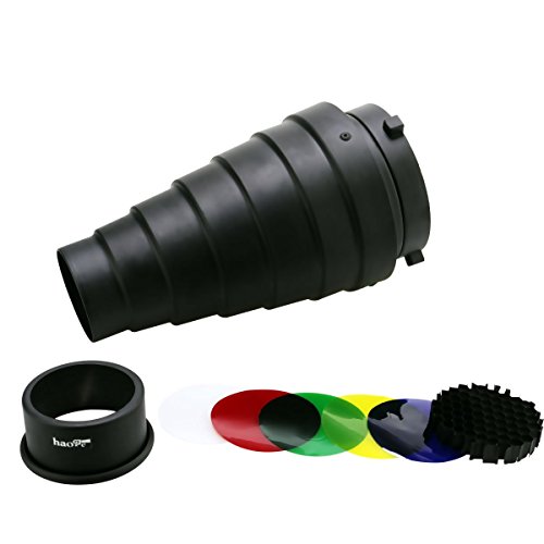 Haoge Metal Conical Snoot with Honeycomb Grid and Color Gel Filter Kit for Bowens Mount Studio Strobe Monolight Photography Flash Light