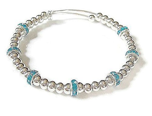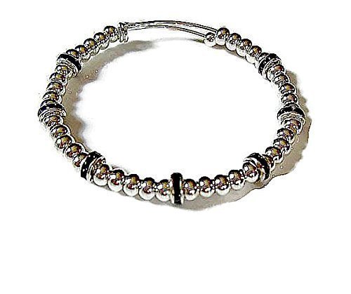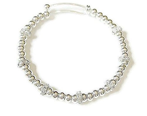 -. Title : Adjustable Bangle - Rhinestone and Silver Beaded Adjustable Companion bangle, Stacking bangle, Accent Bracelet