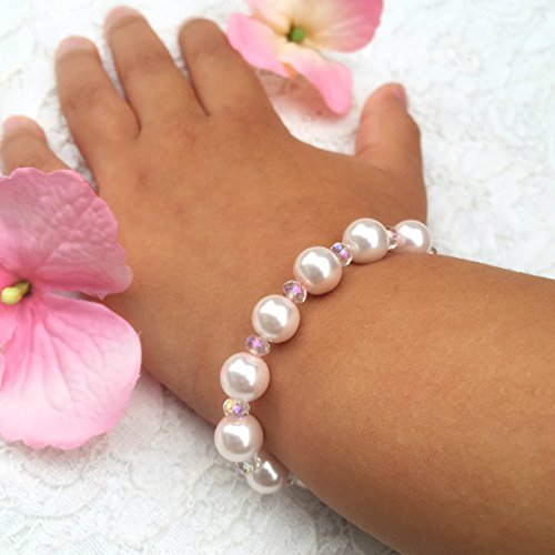 -. Brand : My Cupcake Inspiration -. Color : pink -. Department : Girls -. IsAdultProduct : 0 -. ProductGroup : Guild Product -. ProductTypeName : GUILD_JEWELRY -. Title : 1 Pearl Bracelet for Girls - Handmade Girls Jewelry - Stretch Pearl Bracelet - Glass Pearl and Crystal - Custom Size - Choose your color: Pink, White or Ivory Pearl