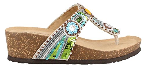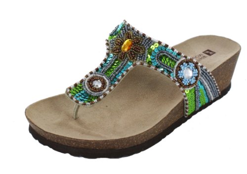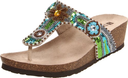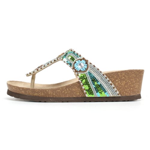Studio : 6pm White Mountain Footwear RP Publisher : 6pm White Mountain Footwear RP Binding : Shoes Product Description Stitched toe post. Beads, jewels, and sequins adorn the leather upper. Man-made lining and insole. Cork wedge heel. Textured man-made outsole. Imported. 0