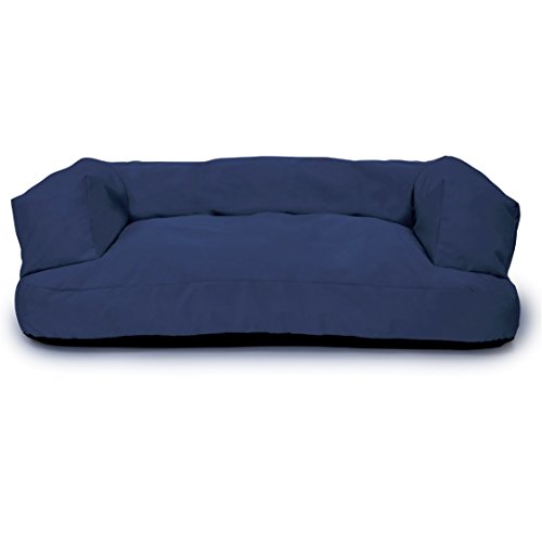 -. Binding : Misc. -. Brand : IB -. Color : Navy -. EAN : 0650415968213 -. Feature : COMFORTABLE: Big dog bed has super comfortable extra thick seating with durable canvas cover / CONVENIENT: Machine washable, removable zippered cover for easy maintenance; Water-resistant, chew-proof, and stain-resistant / SIZE IT UP: Large Dimensions: 50 inches long x 29 inches wide x 6 inches high (9 inches at the arms) / DURABLE: 600 Denier polyester coated canvas fabric for optimal durability and resilience; Can be used outdoors (do not leave directly in rain) / Color: Blue; Made in North America; Includes non-skid bottom and MK Exclusives BONUS rope toy -. Label : IB -. Manufacturer : IB -. NumberOfItems : 1 -. PackageQuantity : 1 -. ProductGroup : Pet Products -. ProductTypeName : PET_SUPPLIES -. Publisher : IB -. Size : Large -. Studio : IB -. Title : Big Dog Bed Large Pet Couch - Therapeutic Memory Foam Fill Doggie Sofa - Best Comfort Removable, Washable Cover Bundle w Rope Toy -. UPC : 650415968213