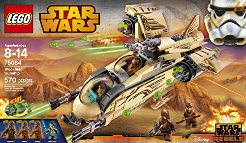 Protect Wullffwarro and his Jedi friend, Kanan Jarrus, with the powerful LEGO Star Wars Wookiee Gunship. As featured in the Star Wars: Rebels animated TV series, this amazing battle-ready craft has loads of weapons to see off any invading force, like movable front cannons and an elevating top cannon. When the action really heats up, raise the wings into attack mode and unleash the never-before-seen rapid shooters! If you run low on ammo, open the side hatches to access the spare supply, then lower the rear bay door and unload the mobile gun post. Includes 4 minifigures with assorted weapons: Wullffwarro, Kanan Jarrus and 2 Wookiees.Feature