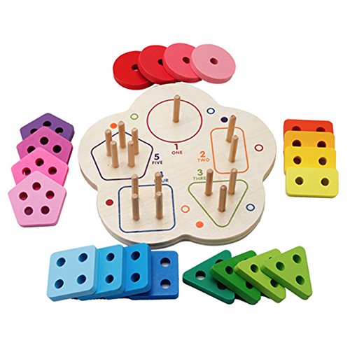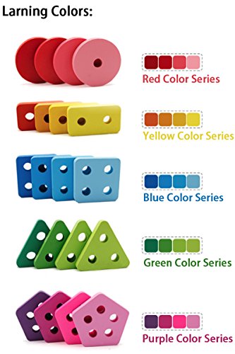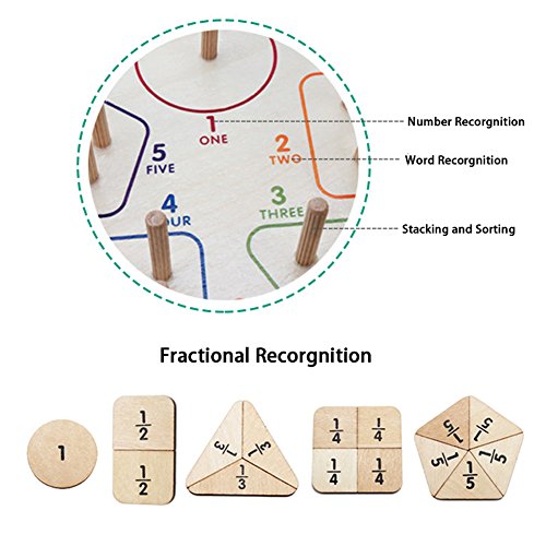 Wooden Shape Sorting Stacking Board Contains 1 pieces wooden base, 20 pieces shape blocks and 15 pieces fraction blocks, detachable and removable blocks, can increase the baby's ability of creativity