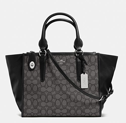 Signature jacquard with leather trim. Inside zip, cell phone and multifunction pockets.