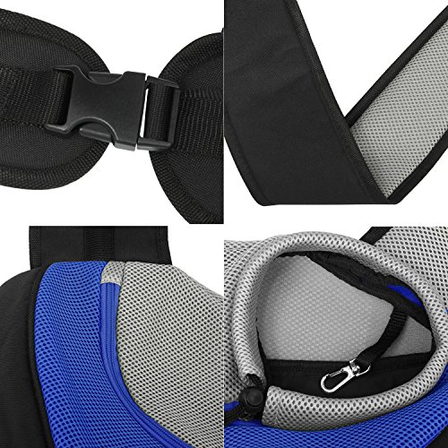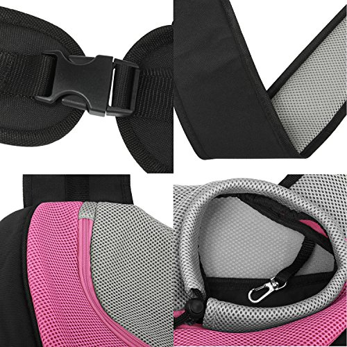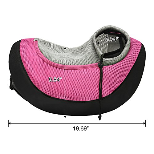 -. Feature : Portable and fashionable carrier for puppy,cats,rabbits or other little animals / Material:High-quality waterproof PU leather and breathable mesh design,make the bag suitable for your lovely pet / Two sizes available:Small size can hold pets about 3-5 pounds; Large size can hold pets about up to 8 pounds. / Functional pet carrier and hands-free design: Comfortably and safely transport your pet, convenient for everyday walk, weekend adventure or short distance travel, a great companion for puppy's outdoor activities. / NOTE: To ensure a comfortable stay place for your pets, please check the size carefully. It would be better if the size is slightly bigger than your pet to avoid too tight. As the PU leather's particularity,we recommend you wash the sling and dry it naturally before using