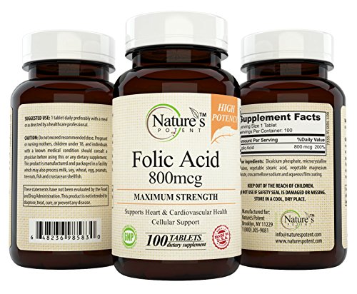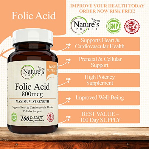 Folic Acid 800 mcg from Nature's Potent is a supplement that can help strengthen your body as a whole. The product will provide you with a man-made version of an essential B vitamin, folate. This element takes part in many processes that govern various body functions.
