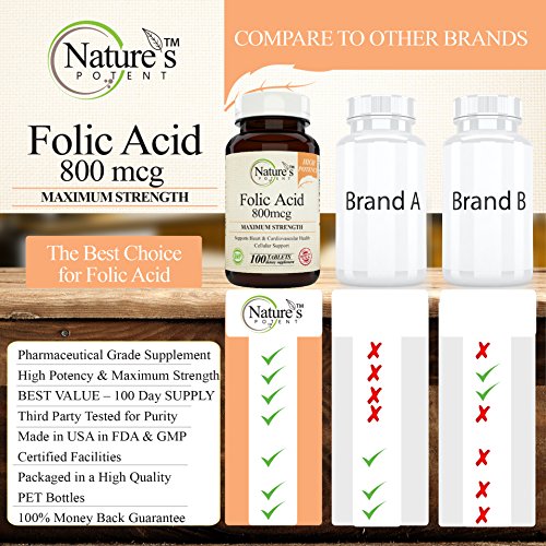 Pharmaceutical Grade - Nature's Potent Folic Acid 800mg capsules - Made to Nature's Potent guaranteed purity potency standards